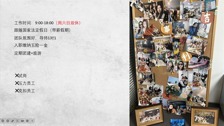 3、入职即签实习或劳动合同,入职缴纳五险一金,双休;